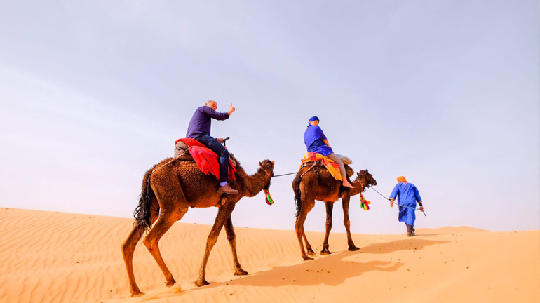 You’ll be welcomed with a glass of mint tea and a desert scarf before your camel-ride starts heading into the mysterious sand-sea of the Erg-Chebbi, guided by an experienced camel guide in fact . Finally, after one hour and a half you'll get to the very best sand dunes in morocco to ascertain one among the simplest sunsets in your life. then you'll get to our nomadic Berber tents where you'll have dinner, campfire, drum party and overnight stay within the desert.